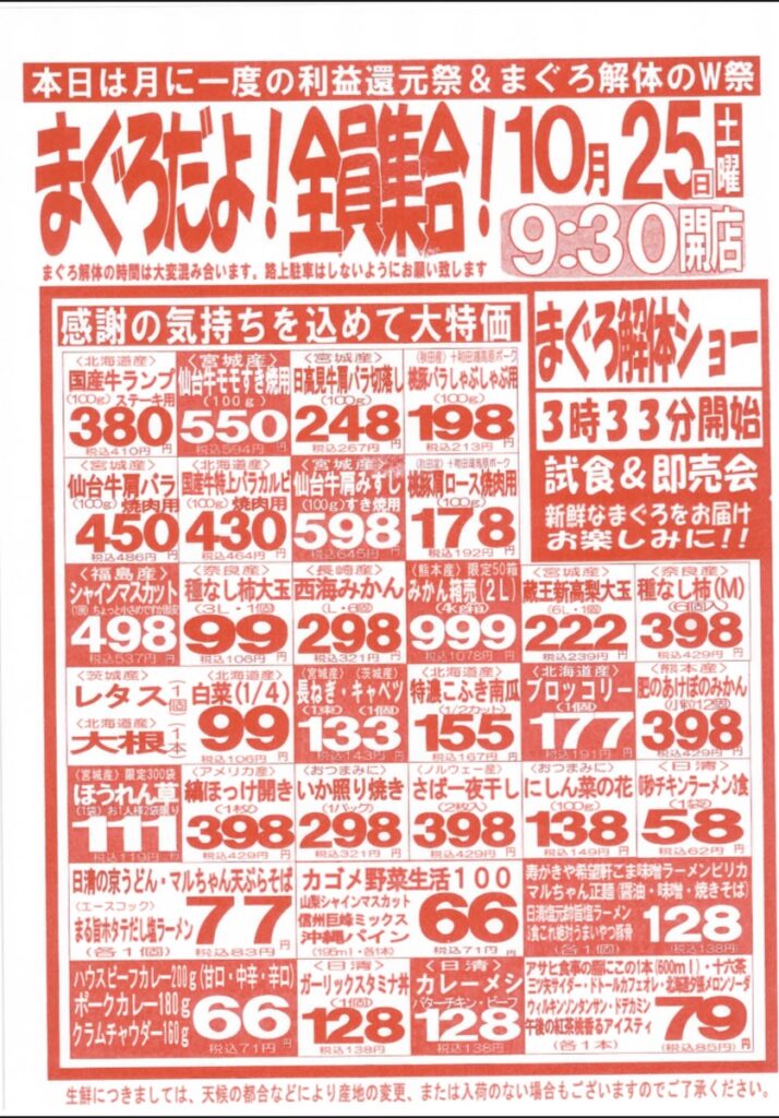チラシ10月25日(土)まぐろだよ!全員集合!まぐろ解体ショー