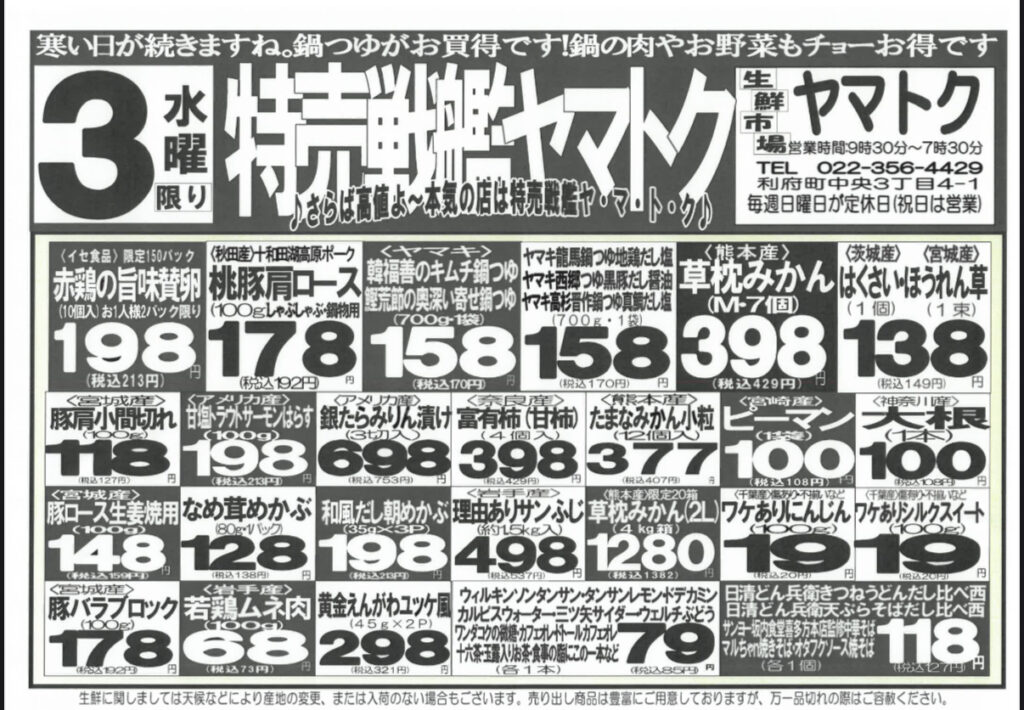 チラシ12月3日(水)特売戦艦ヤマトク
